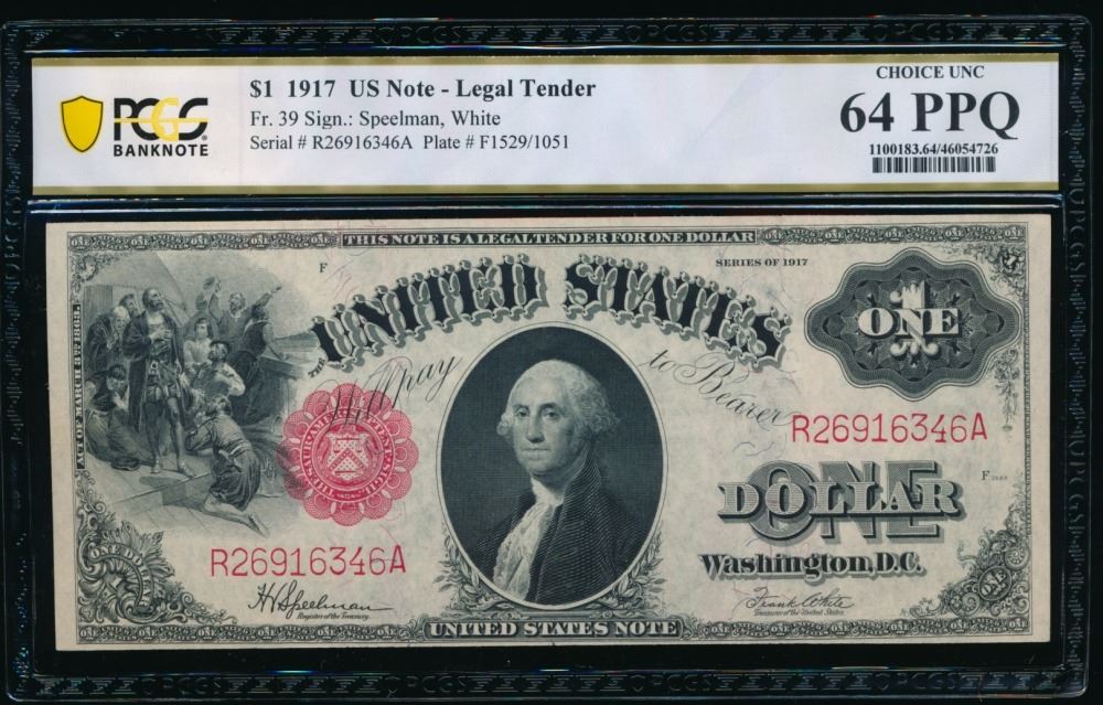 One 1917 $1 Legal Tender Note PCGS 64PPQ.
