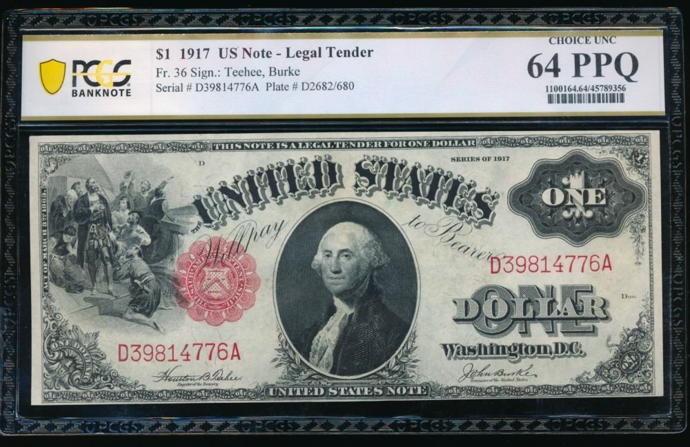 One 1917 $1 Legal Tender Note PCGS 64PPQ.