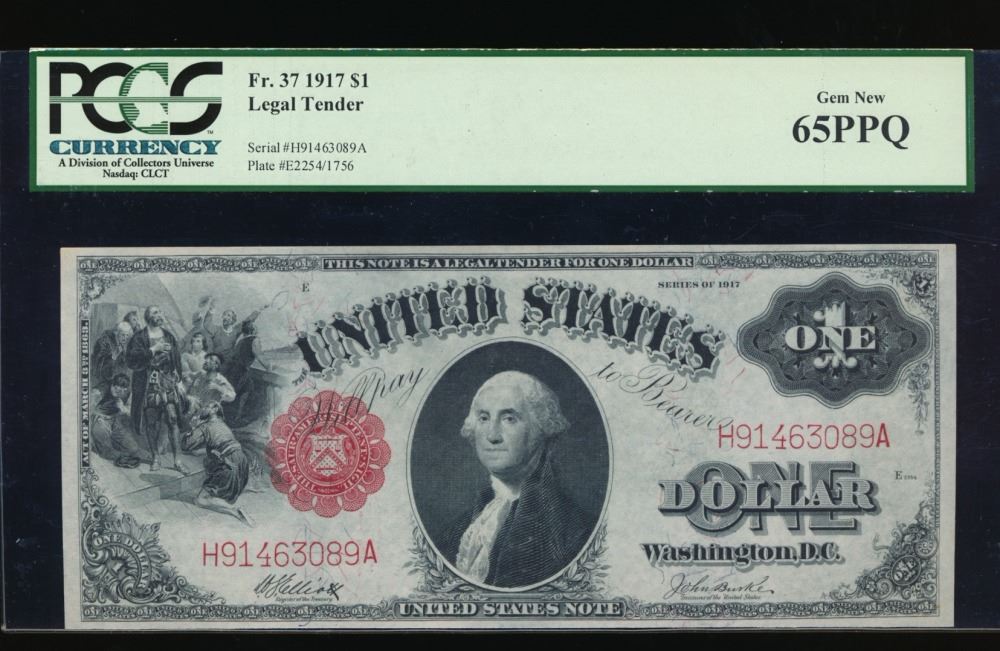 One 1917 $1 Legal Tender Note PCGS 65PPQ.