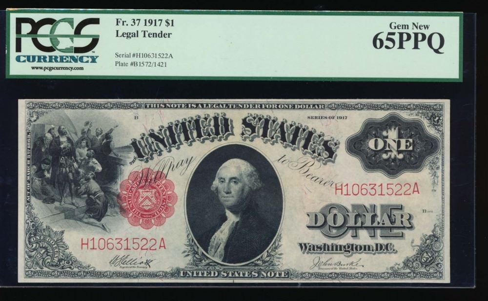 One 1917 $1 Legal Tender Note PCGS 65PPQ.