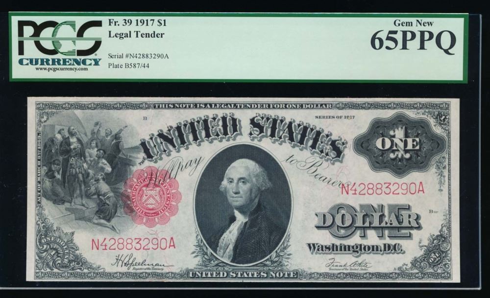 One 1917 $1 Legal Tender Note PCGS 65PPQ.