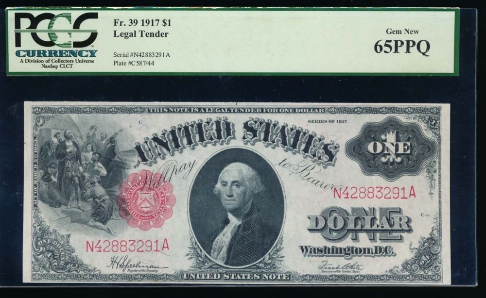 One 1917 $1 Legal Tender Note PCGS 65PPQ.
