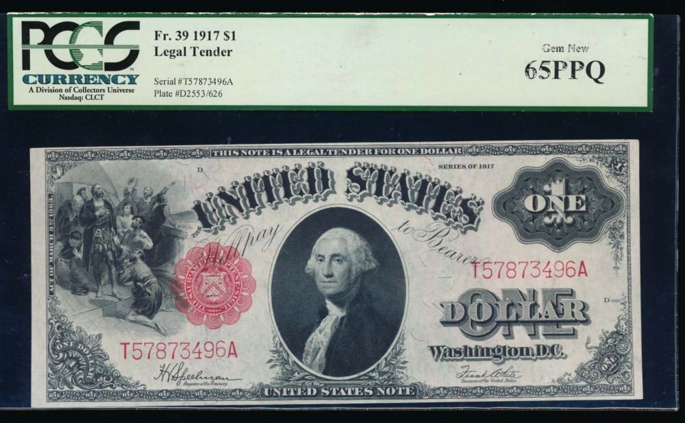 One 1917 $1 Legal Tender Note PCGS 65PPQ.