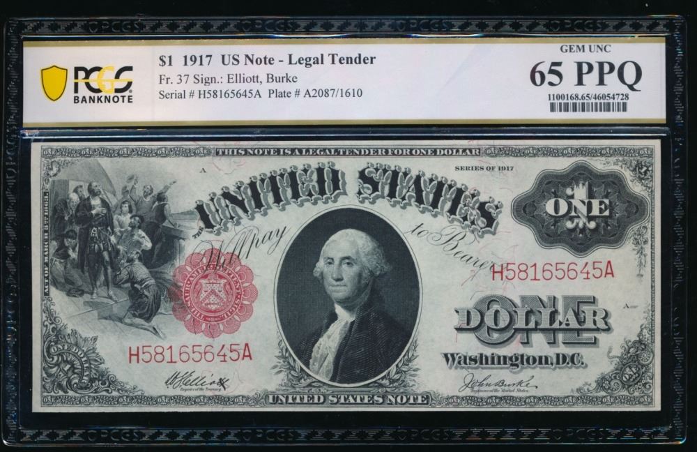 One 1917 $1 Legal Tender Note PCGS 65PPQ.