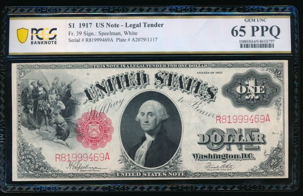 One 1917 $1 Legal Tender Note PCGS 65PPQ.