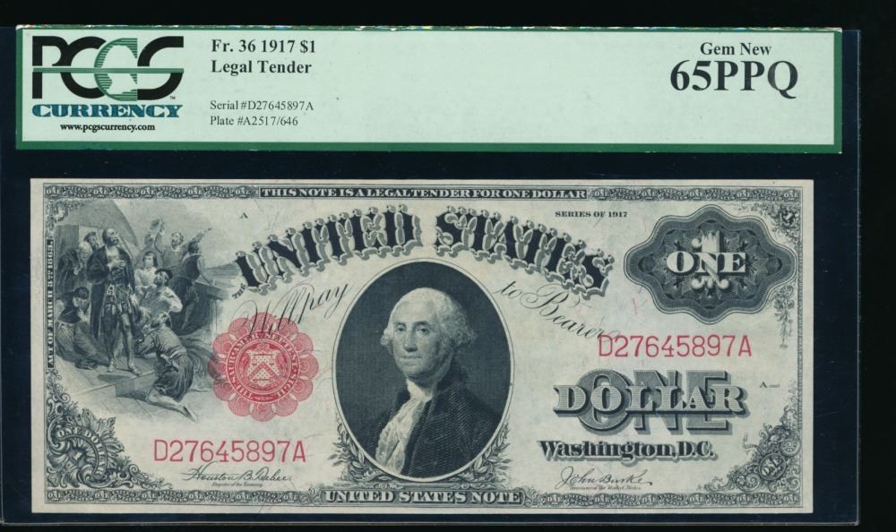 One 1917 $1 Legal Tender Note PCGS 65PPQ.