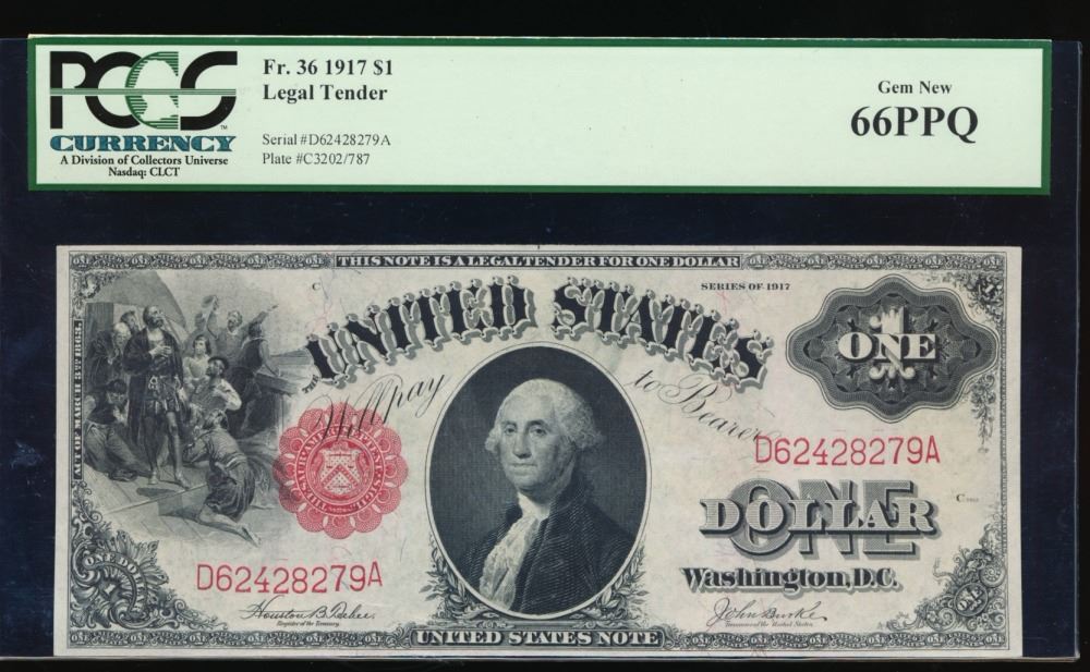 One 1917 $1 Legal Tender Note PCGS 66PPQ.