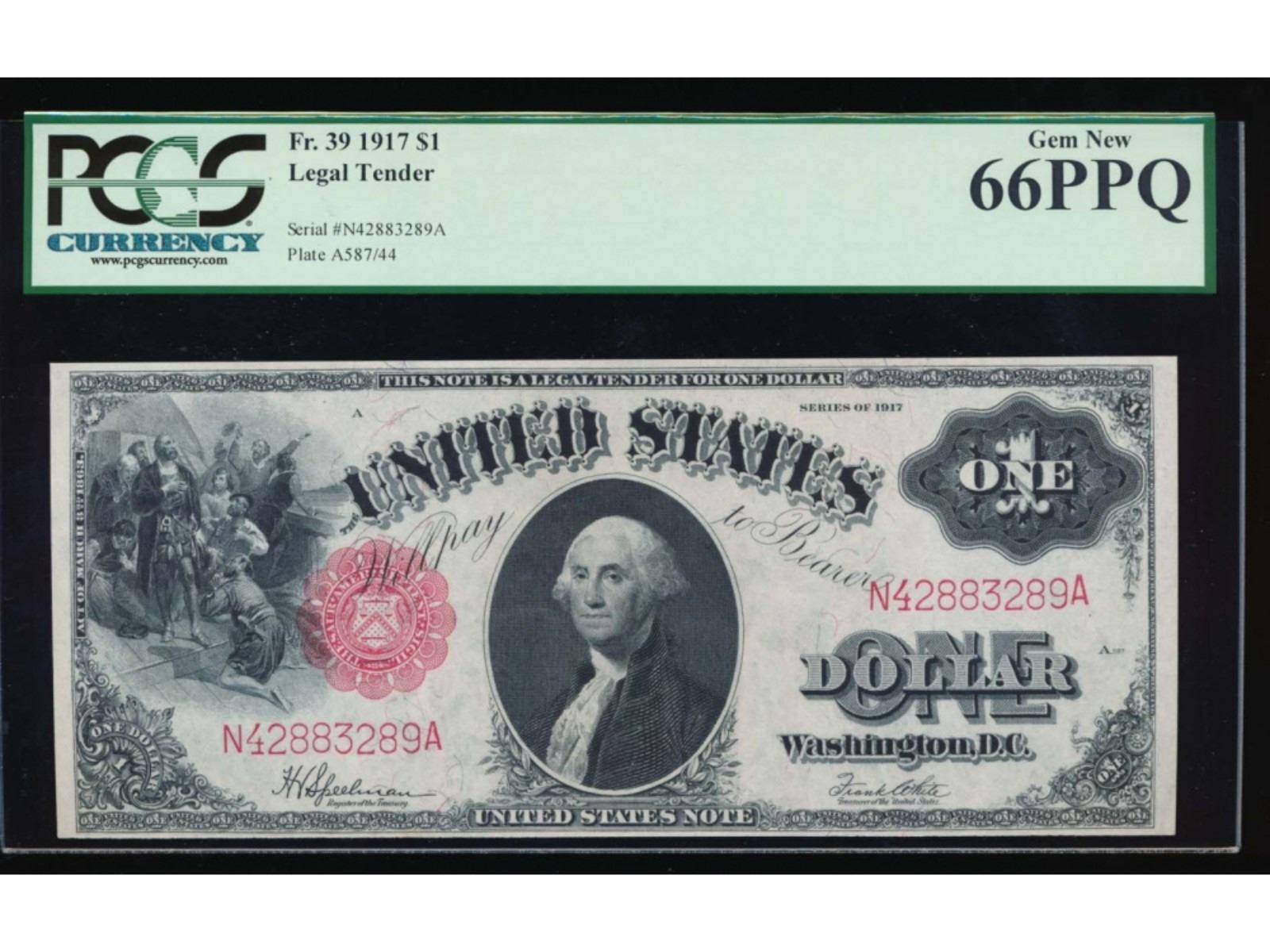 One 1917 $1 Legal Tender Note PCGS 66PPQ.