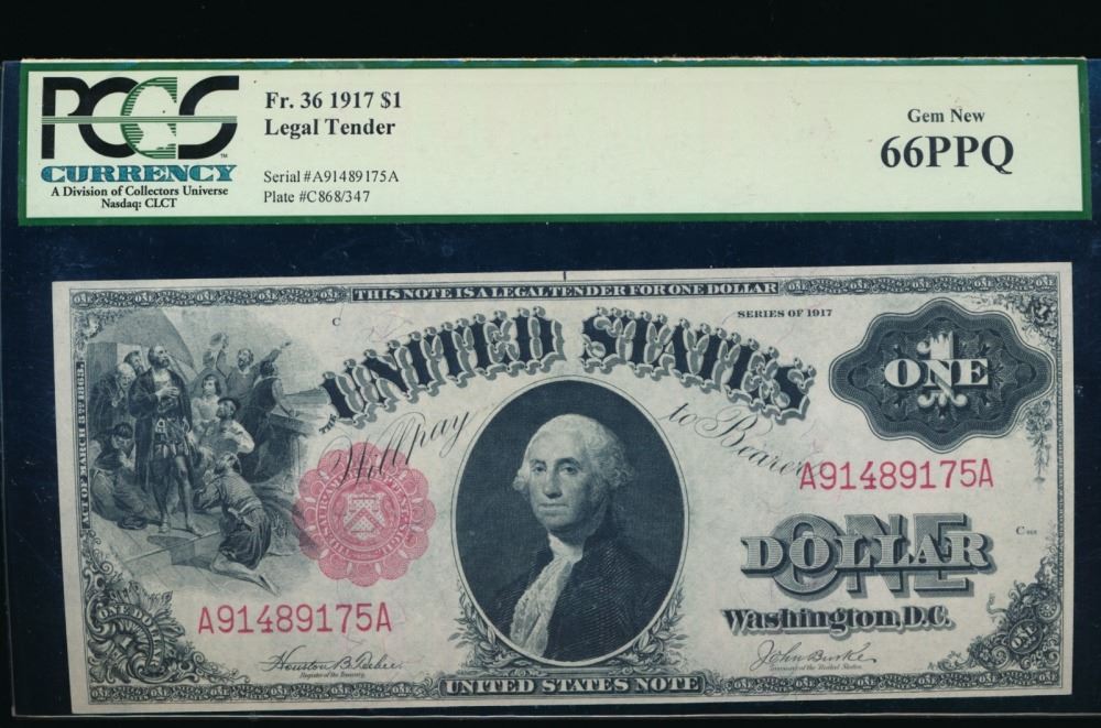 One 1917 $1 Legal Tender Note PCGS 66PPQ.