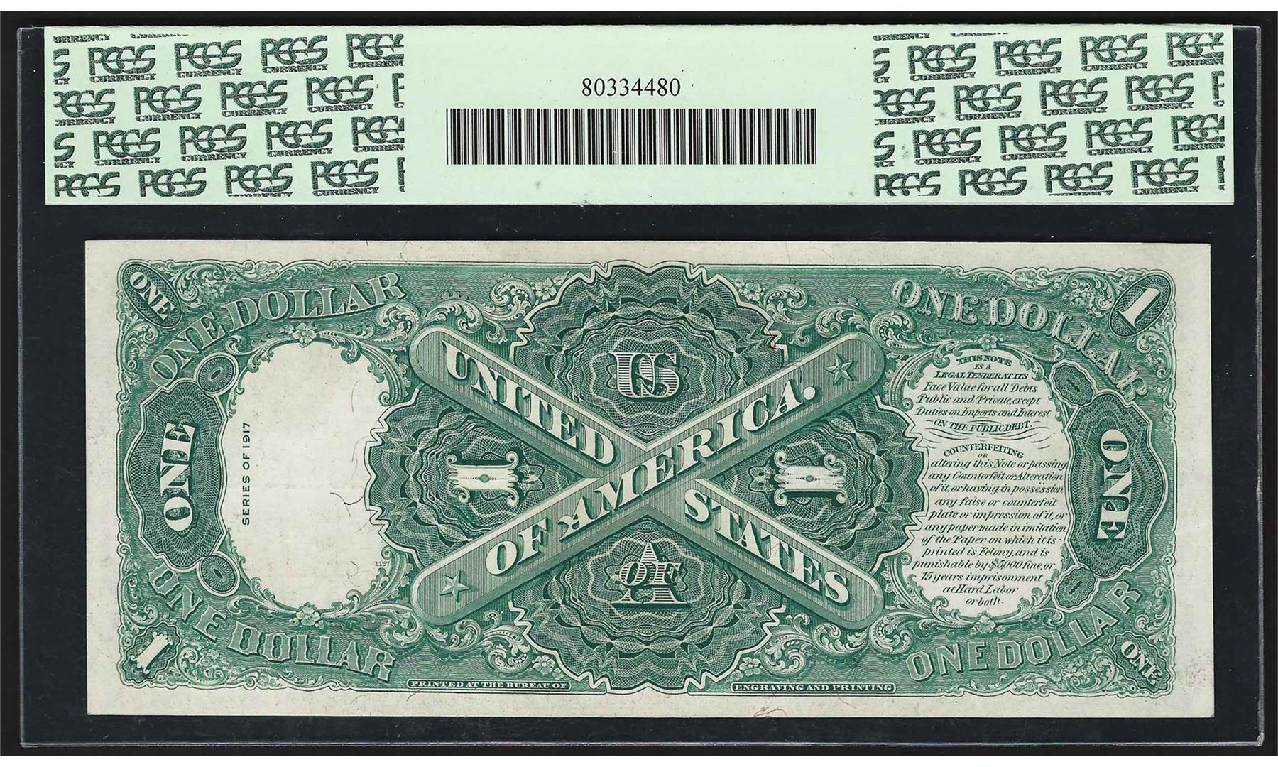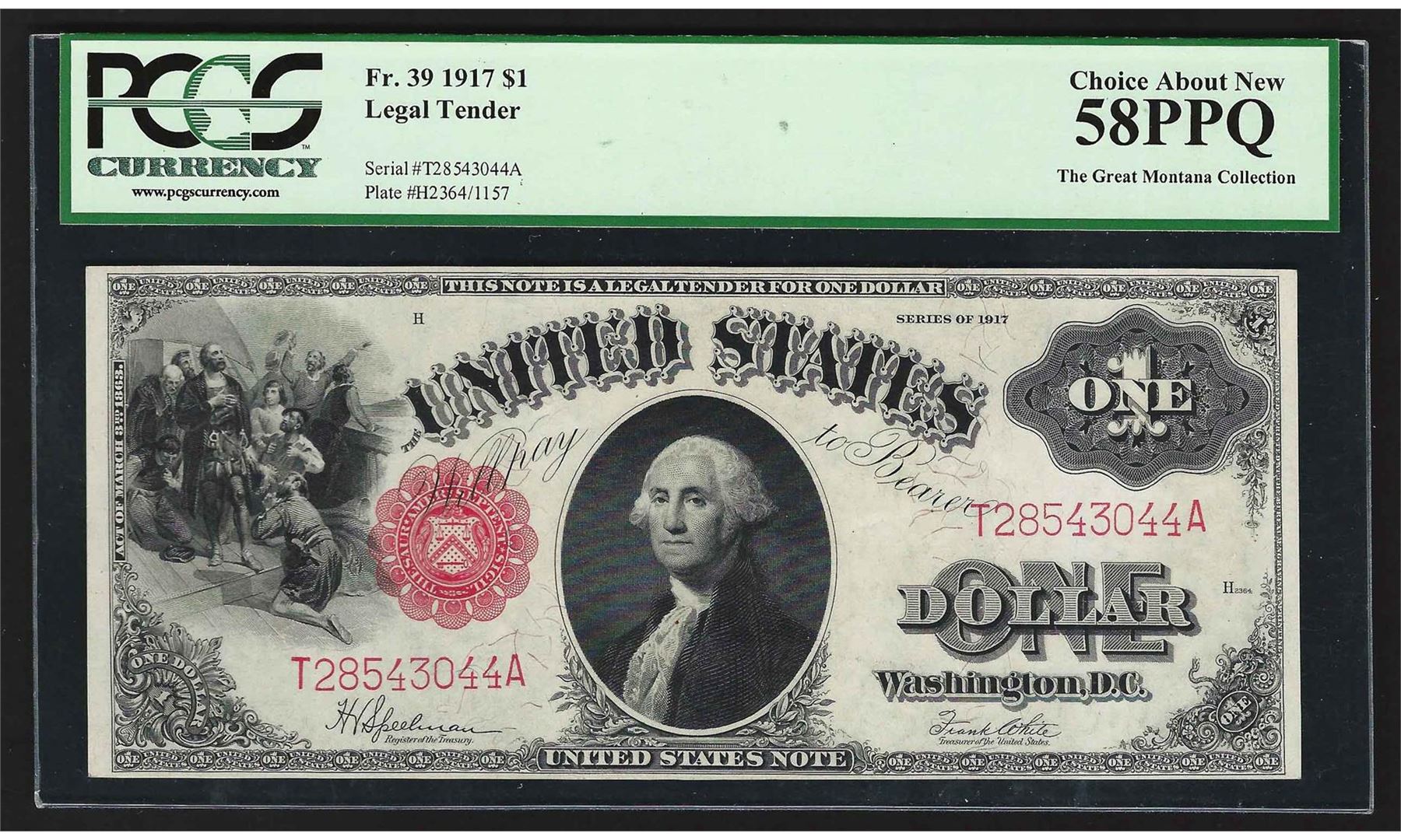 One 1917 $1 Legal Tender Note PCGS Choice About New 58PPQ. PCGS Graded.