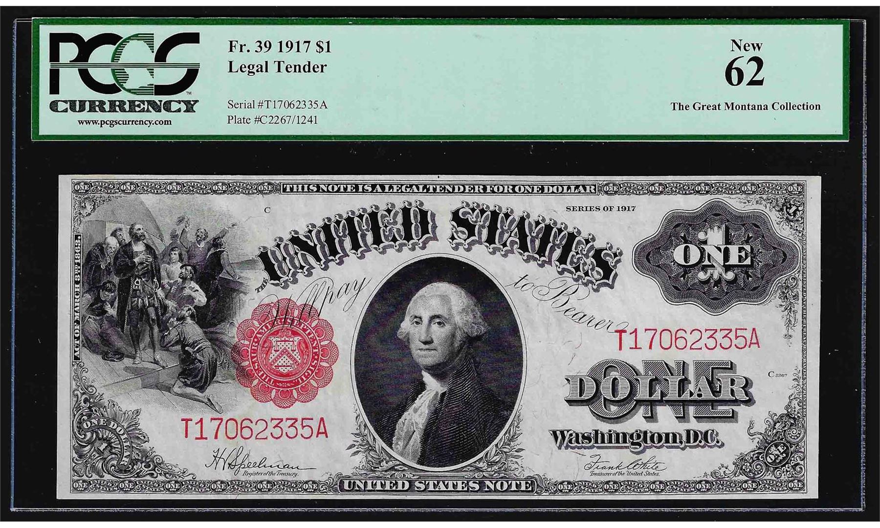 One 1917 $1 Legal Tender Note PCGS New 62. PCGS Graded.