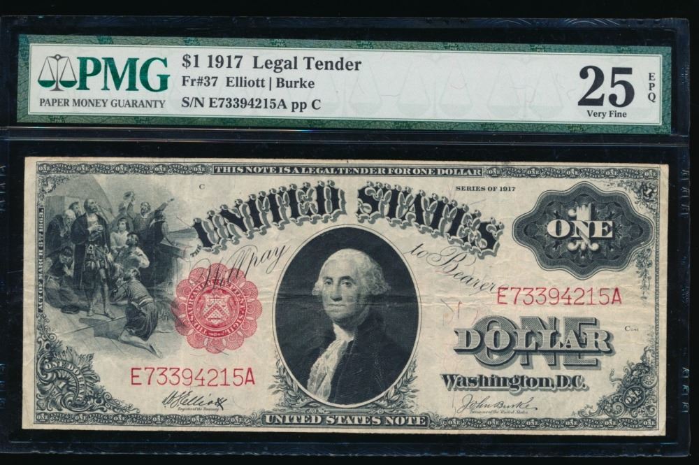One 1917 $1 Legal Tender Note PMG 25EPQ.