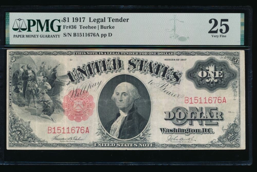 One 1917 $1 Legal Tender Note PMG 25.