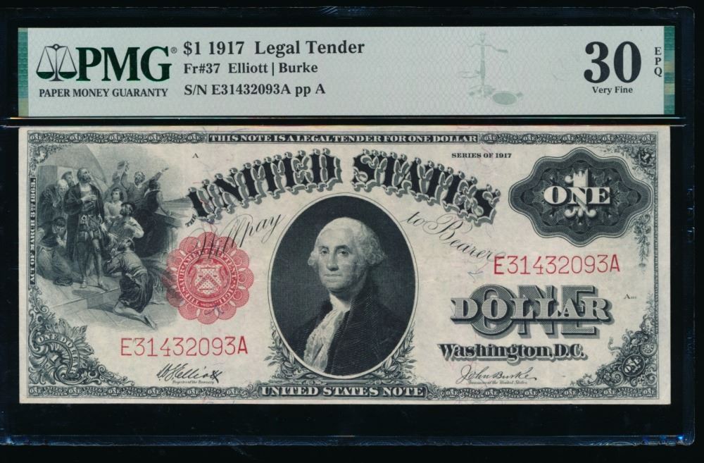 One 1917 $1 Legal Tender Note PMG 30EPQ.