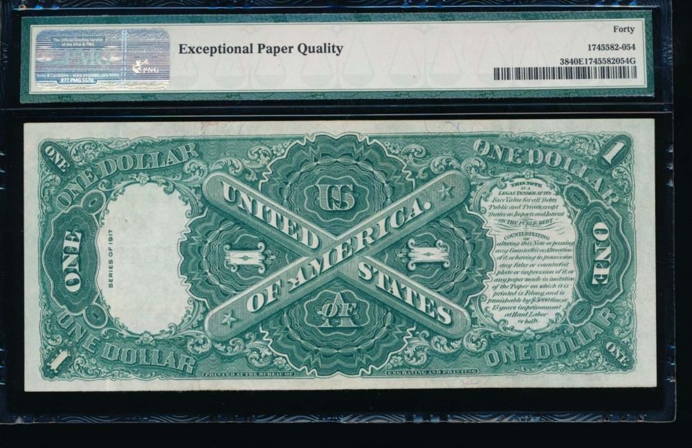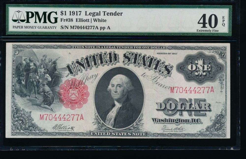 One 1917 $1 Legal Tender Note PMG 40EPQ.