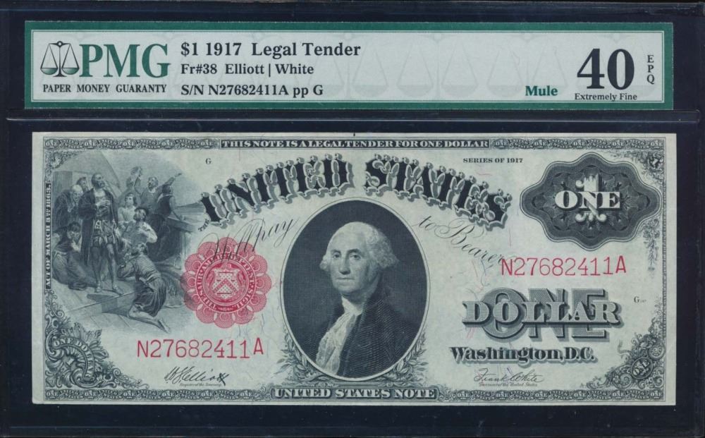 One 1917 $1 Legal Tender Note PMG 40EPQ.