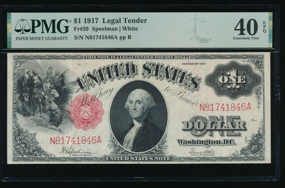 One 1917 $1 Legal Tender Note PMG 40EPQ.