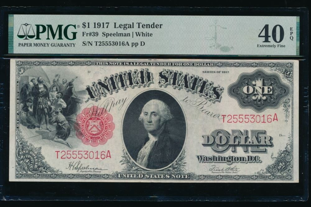 One 1917 $1 Legal Tender Note PMG 40EPQ.