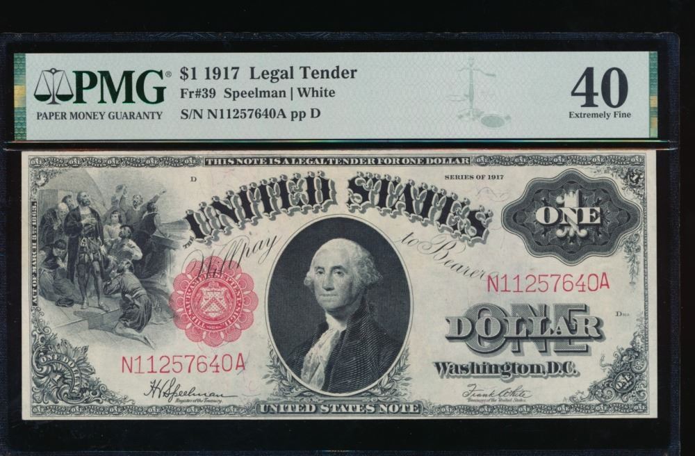 One 1917 $1 Legal Tender Note PMG 40.