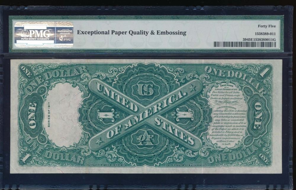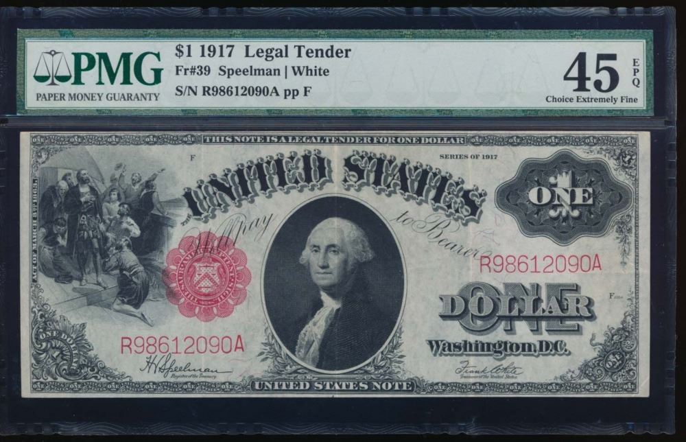 One 1917 $1 Legal Tender Note PMG 45EPQ.