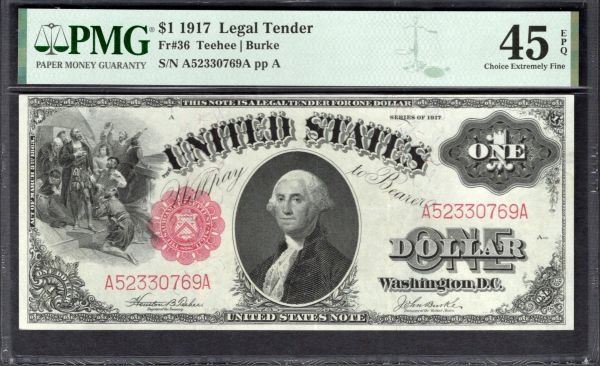 One 1917 $1 Legal Tender Note PMG 45EPQ.