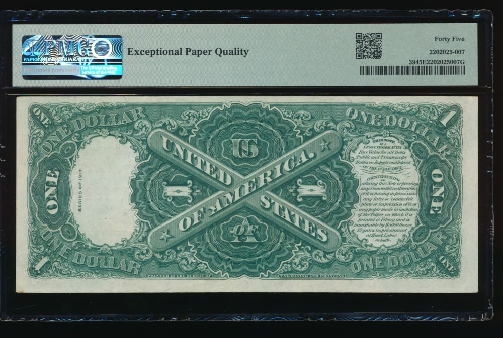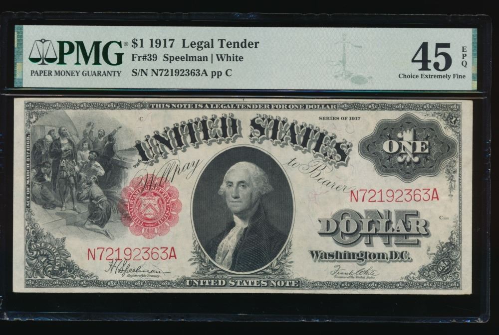One 1917 $1 Legal Tender Note PMG 45EPQ.