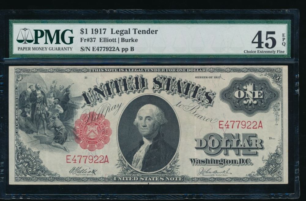 One 1917 $1 Legal Tender Note PMG 45EPQ.