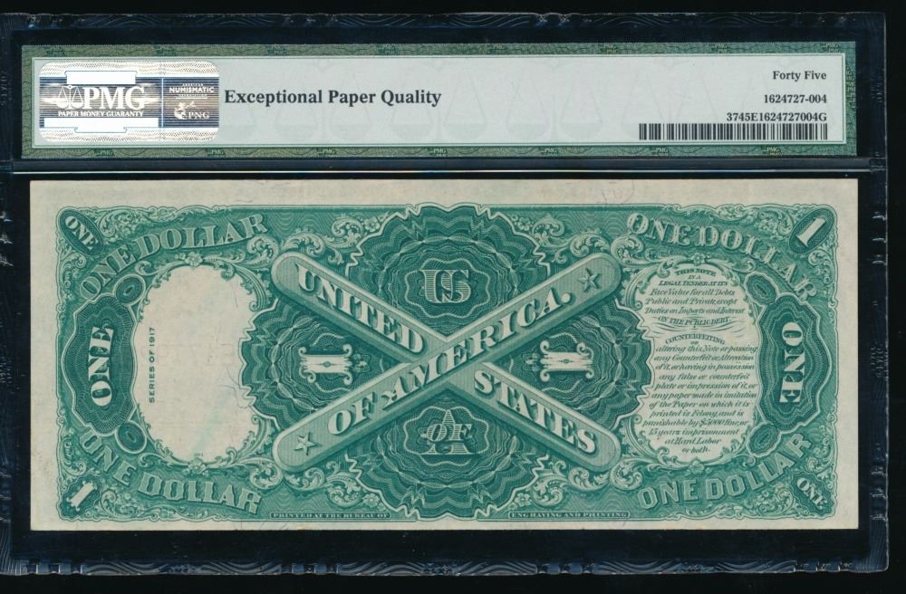 One 1917 $1 Legal Tender Note PMG 45EPQ.