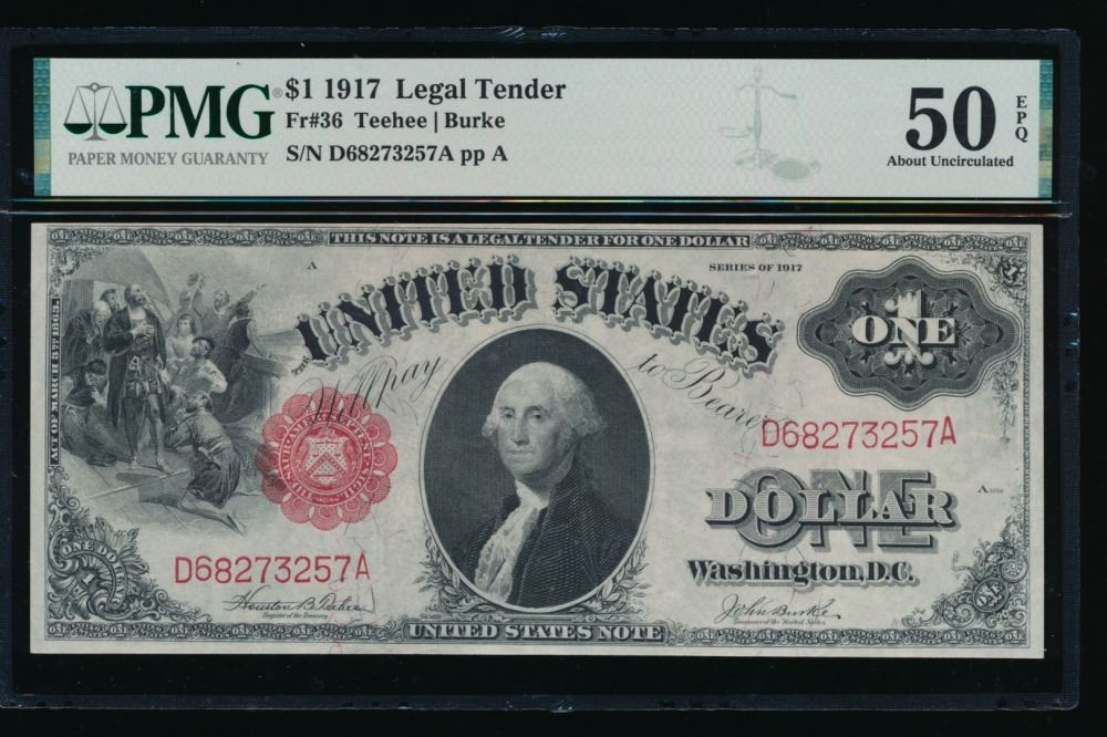 One 1917 $1 Legal Tender Note PMG 50EPQ.