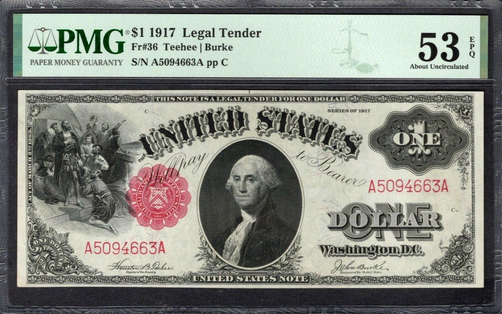 One 1917 $1 Legal Tender Note PMG 53EPQ.