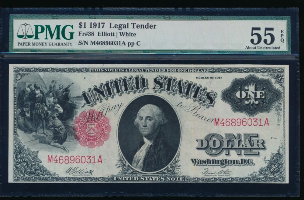 One 1917 $1 Legal Tender Note PMG 55EPQ.