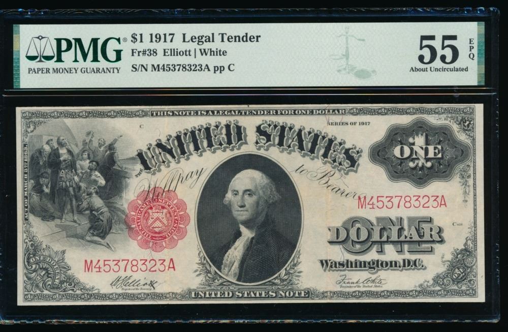 One 1917 $1 Legal Tender Note PMG 55EPQ.
