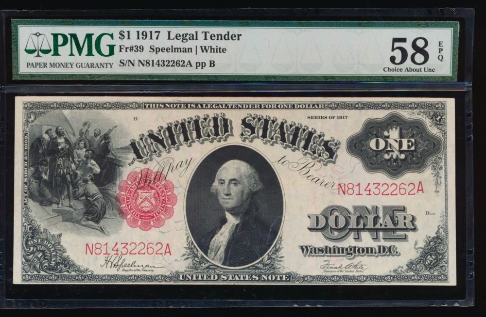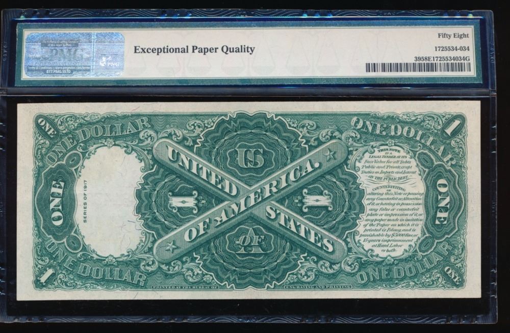 One 1917 $1 Legal Tender Note PMG 58EPQ.