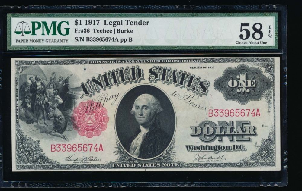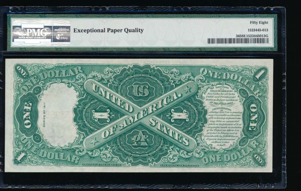 One 1917 $1 Legal Tender Note PMG 58EPQ.