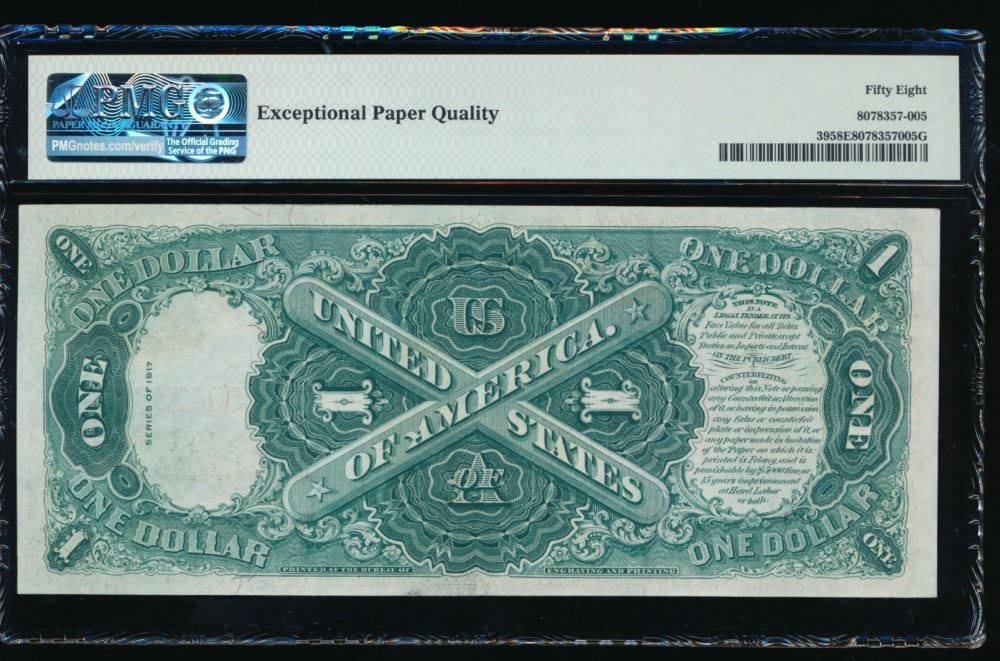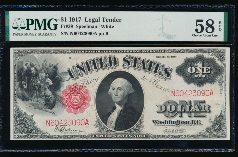 One 1917 $1 Legal Tender Note PMG 58EPQ.