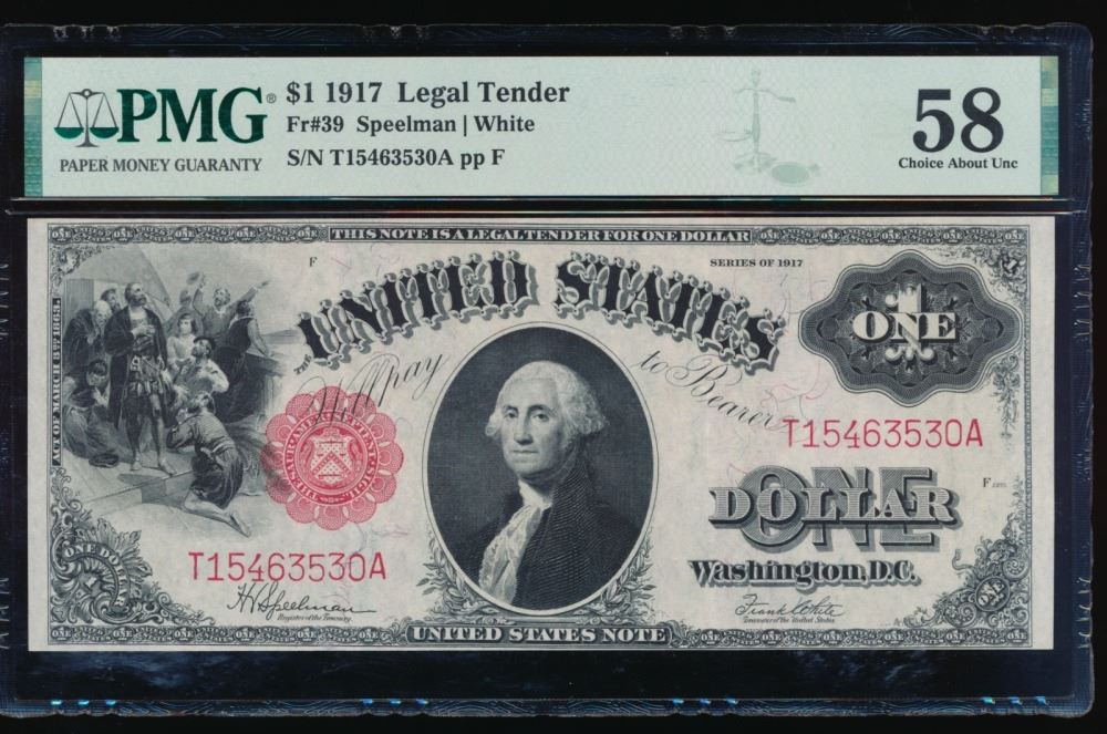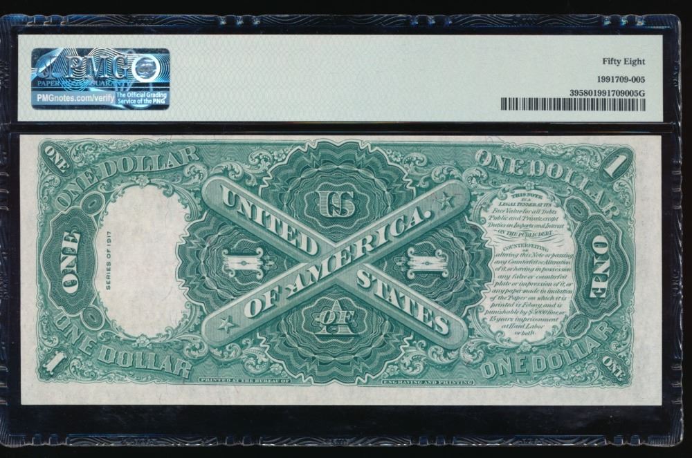 One 1917 $1 Legal Tender Note PMG 58.