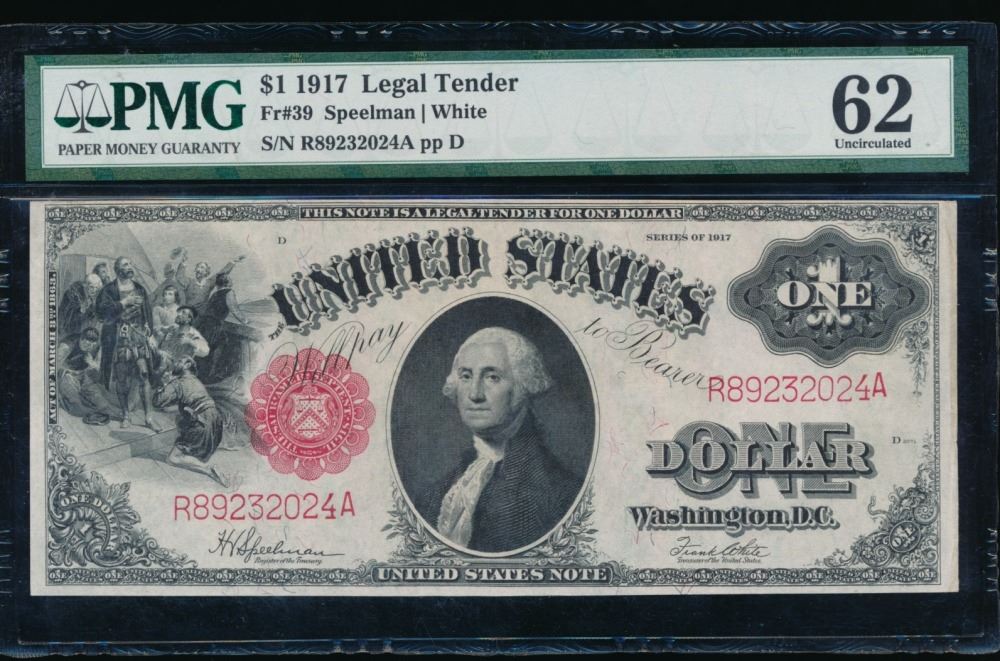 One 1917 $1 Legal Tender Note PMG 62.