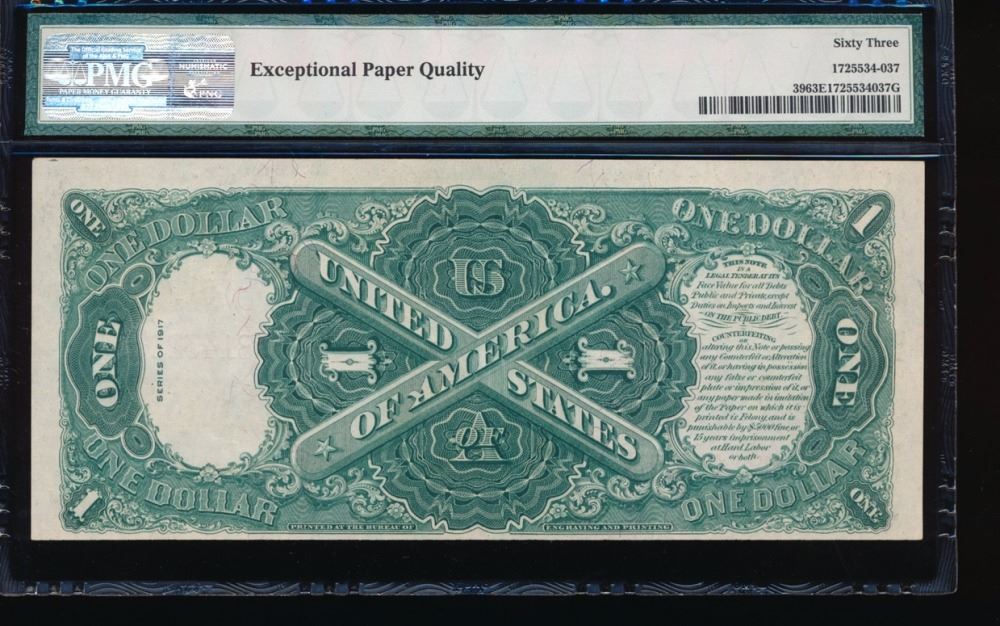 One 1917 $1 Legal Tender Note PMG 63EPQ.