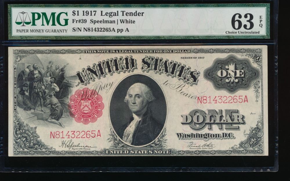 One 1917 $1 Legal Tender Note PMG 63EPQ.