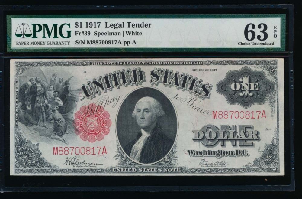 One 1917 $1 Legal Tender Note PMG 63EPQ.