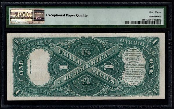 One 1917 $1 Legal Tender Note PMG 63EPQ.