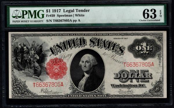 One 1917 $1 Legal Tender Note PMG 63EPQ.