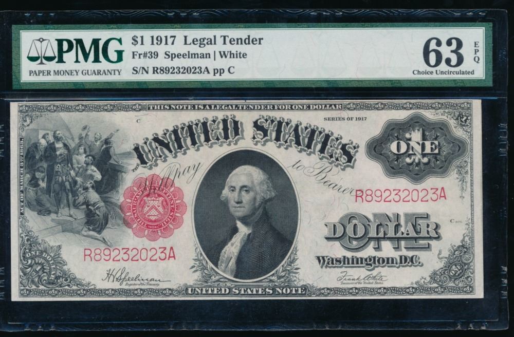 One 1917 $1 Legal Tender Note PMG 63EPQ.