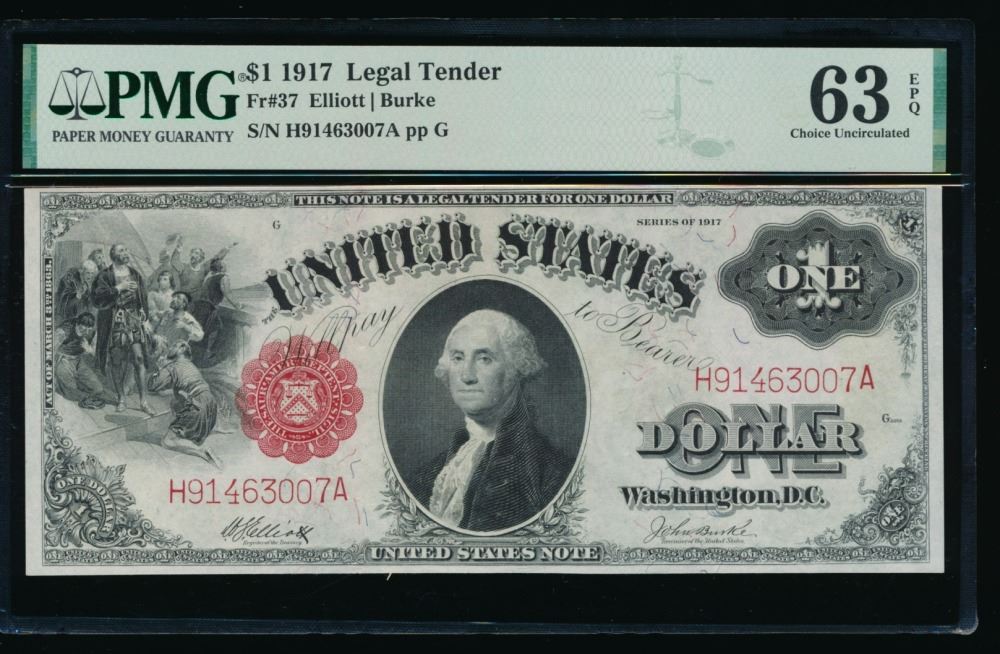 One 1917 $1 Legal Tender Note PMG 63EPQ.