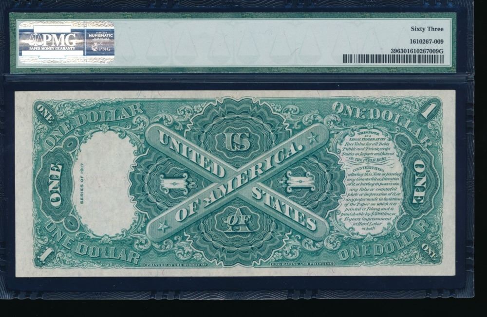 One 1917 $1 Legal Tender Note PMG 63.