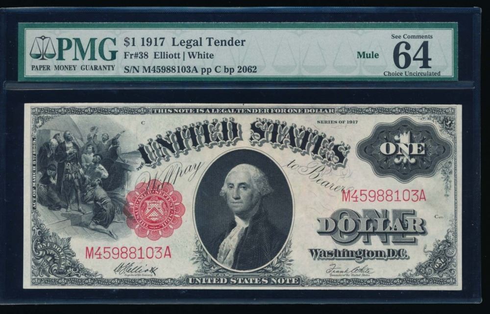 One 1917 $1 Legal Tender Note PMG 64EPQ.