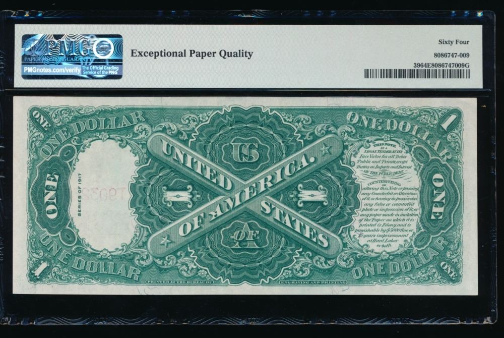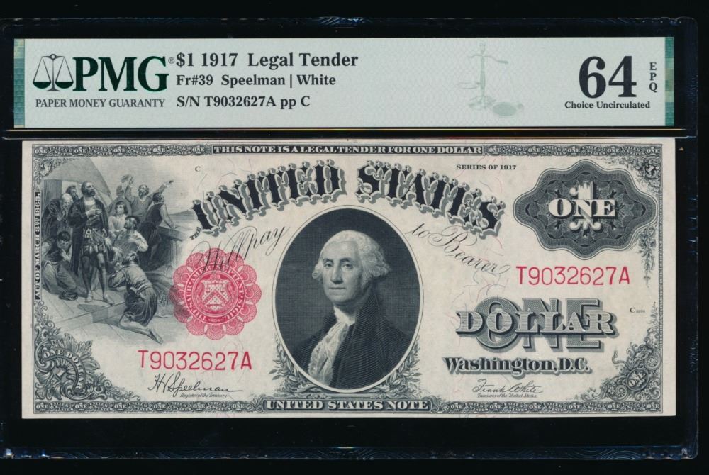 One 1917 $1 Legal Tender Note PMG 64EPQ.