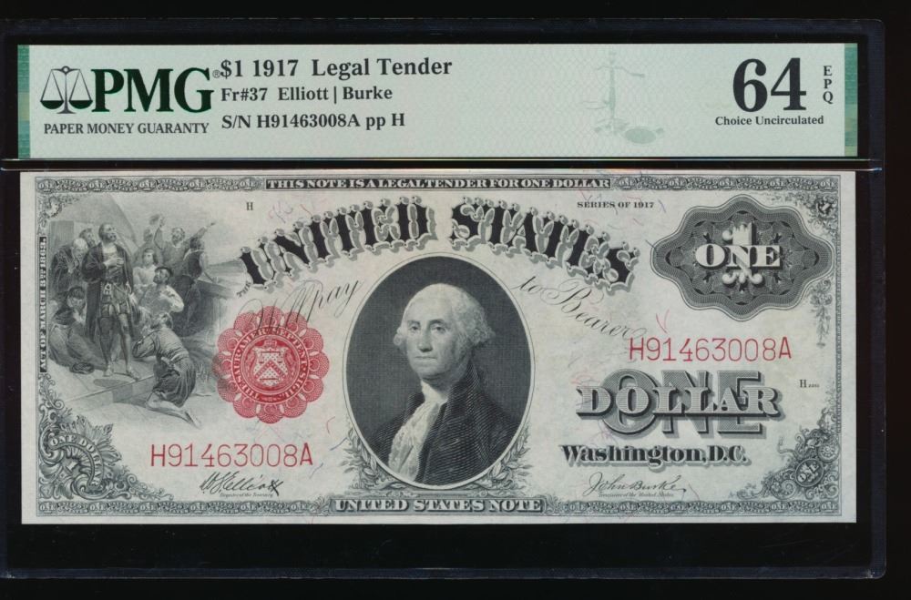 One 1917 $1 Legal Tender Note PMG 64EPQ.