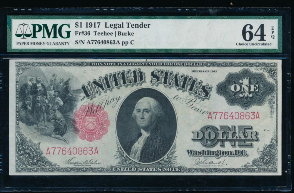 One 1917 $1 Legal Tender Note PMG 64EPQ.