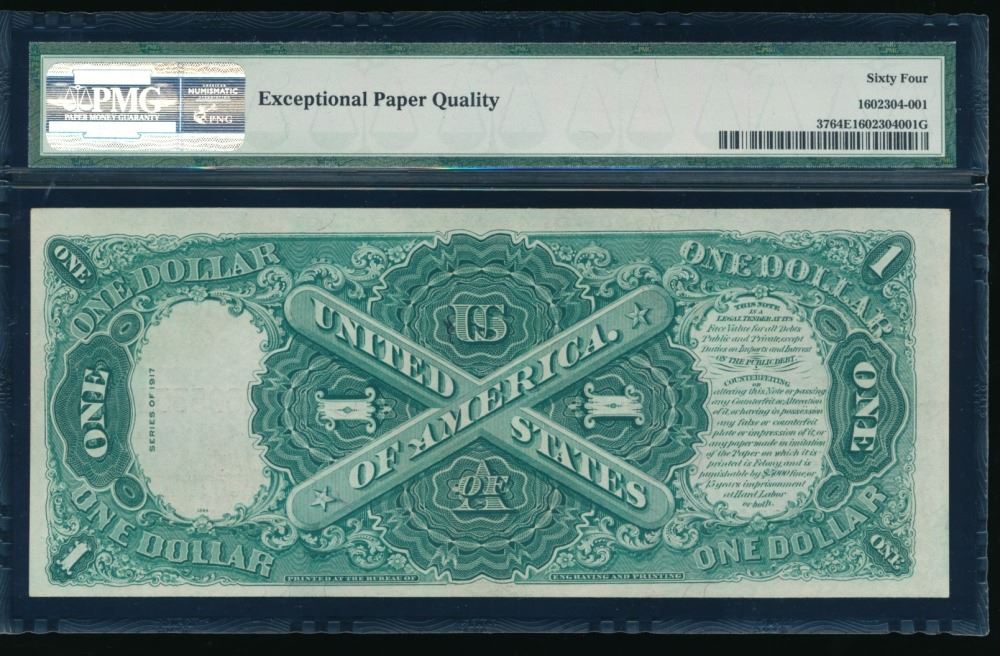 One 1917 $1 Legal Tender Note PMG 64EPQ.